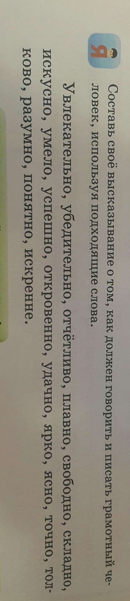Составь свое высказывание о том, как должен говорить и писать грамотный человек, используя подходящие слова.