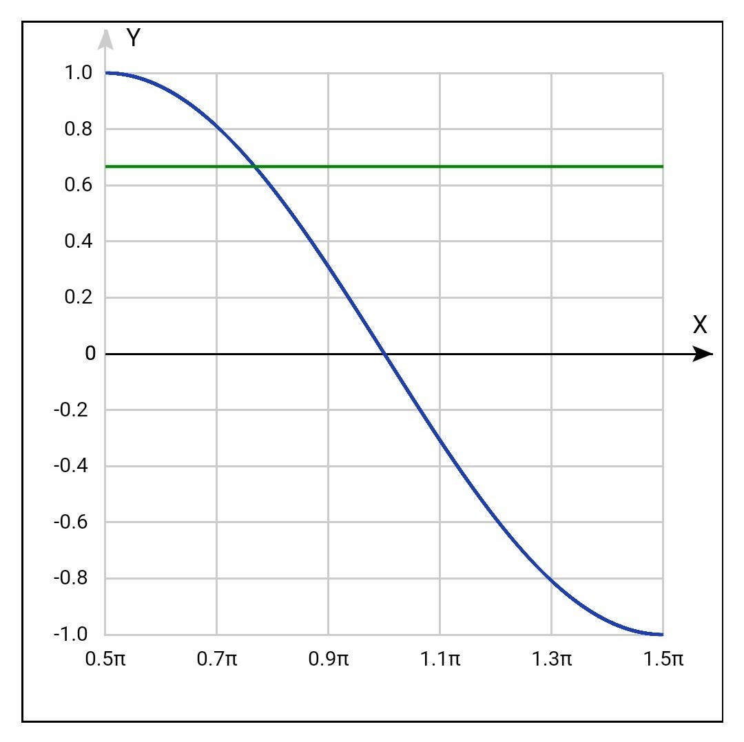 * * * P.S. допустим x₁ = 2π/3 +2πn π/2 ≤ 2π/3 +2πn ≤ 3π/2 ⇔ π/2 - 2π/3 ≤ 2πn ≤ 3π/2 - 2π/3 ⇔ -π/6≤ 2πn ≤ 5π/6 ⇔ -1/12 ≤ n ≤ π/12⇒ n = 0 , следовательно x₁ =2π/3