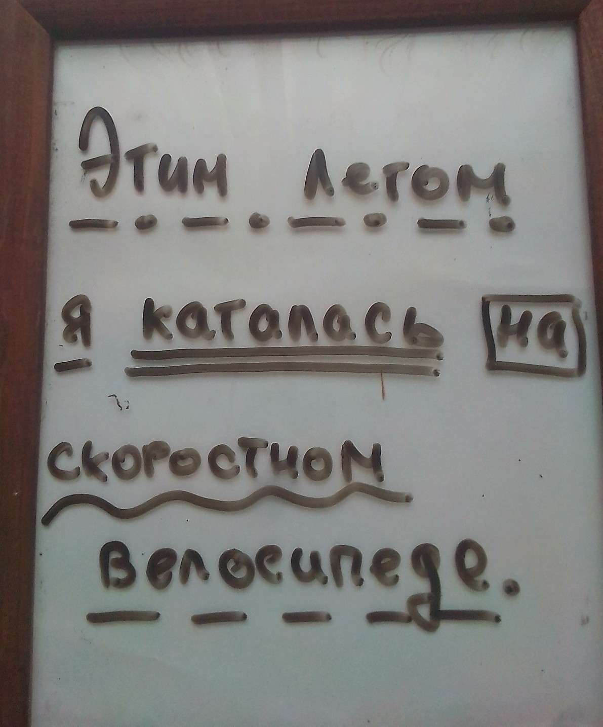 этим летом я каталась на скоростном велосипеде. разложите на члены предложения и запятую надо ли?