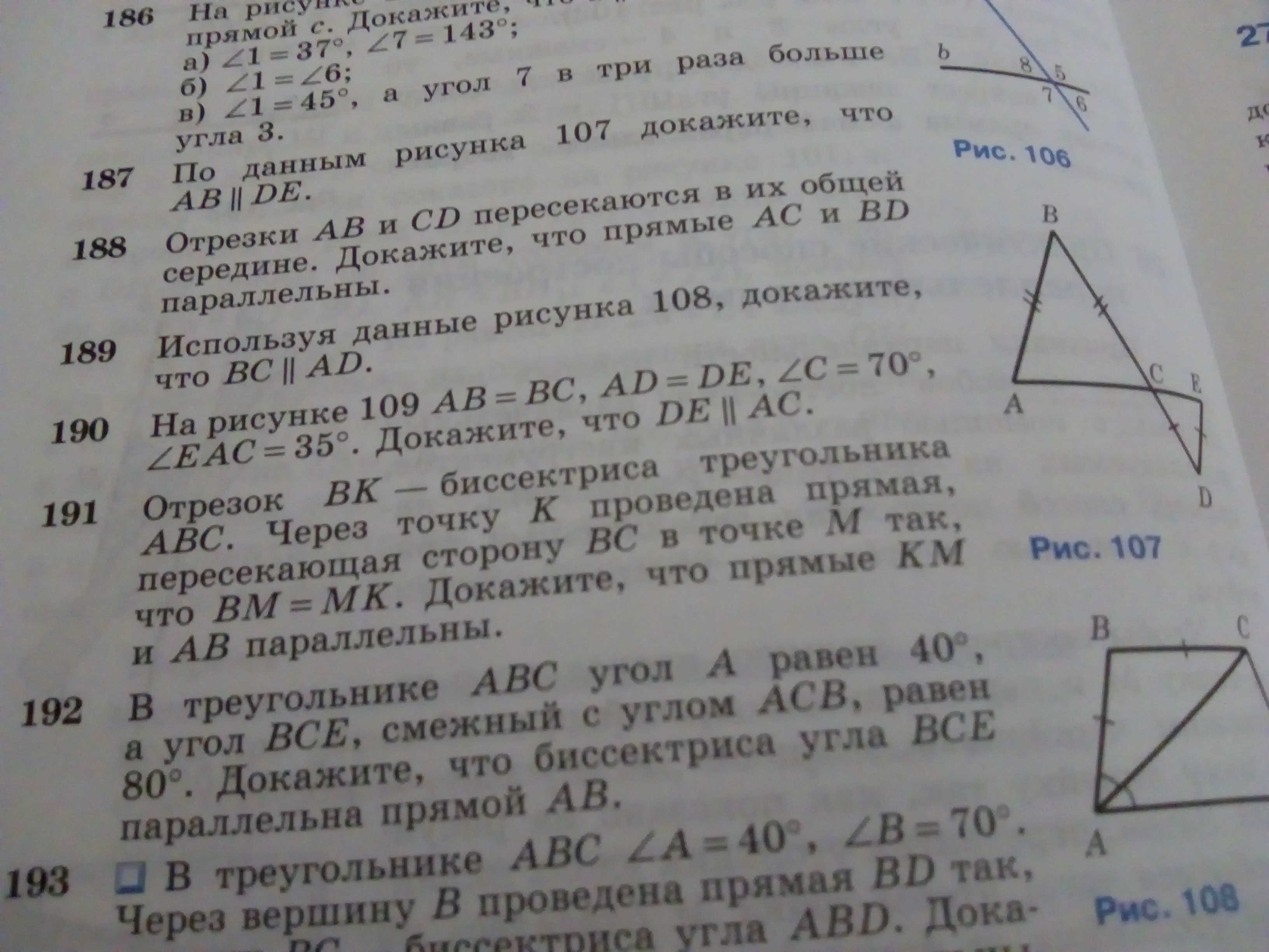 Углы DEA и EAC - внутренние накрест лежащие углы при прямых DE и АС и секущей АЕ, они равны, значит, прямые DE и АС параллельны, что и требовалось доказать.