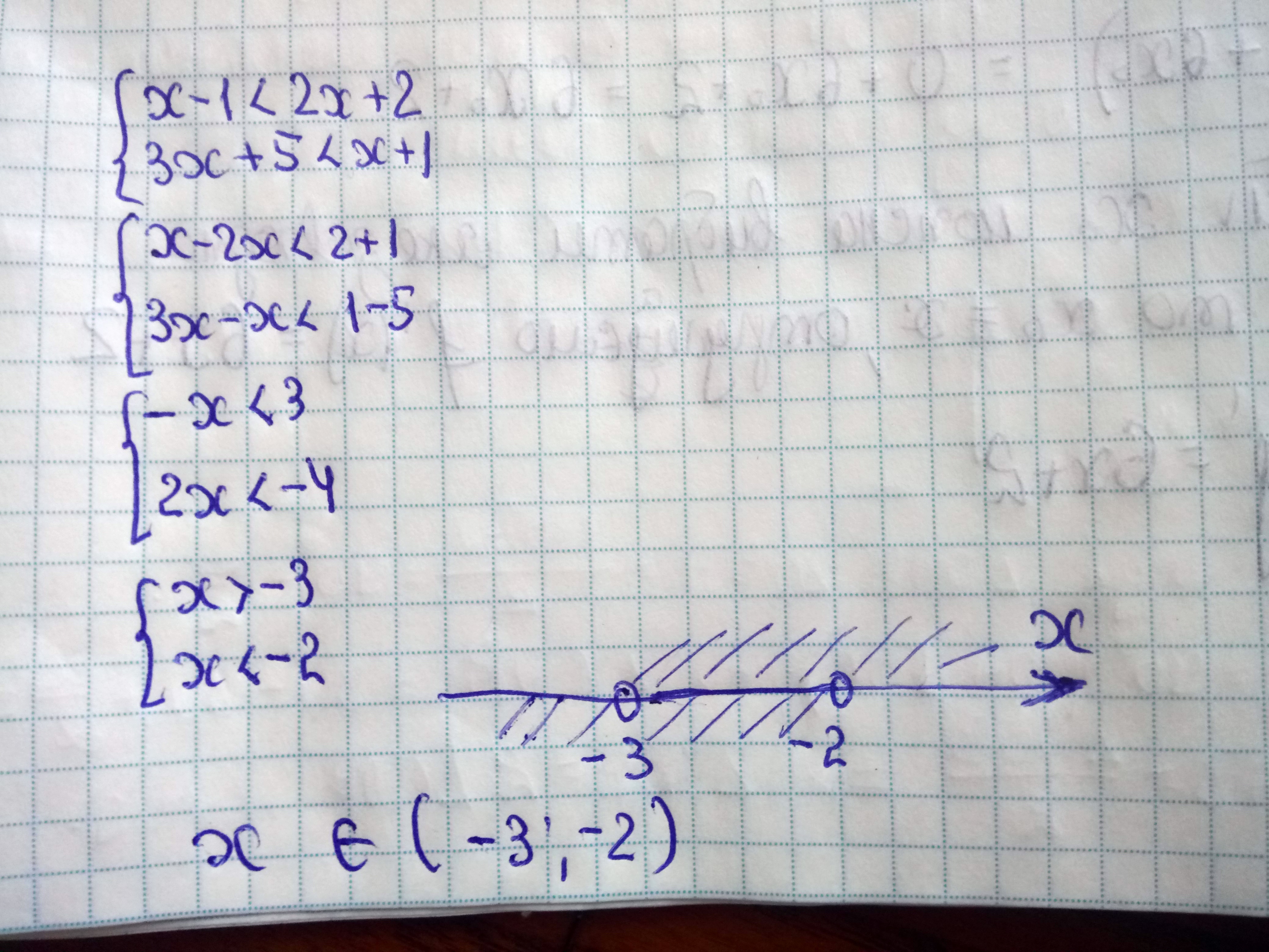 Решите систему неравенств {x-1 < 2x +2 и {3x+5 < x+1