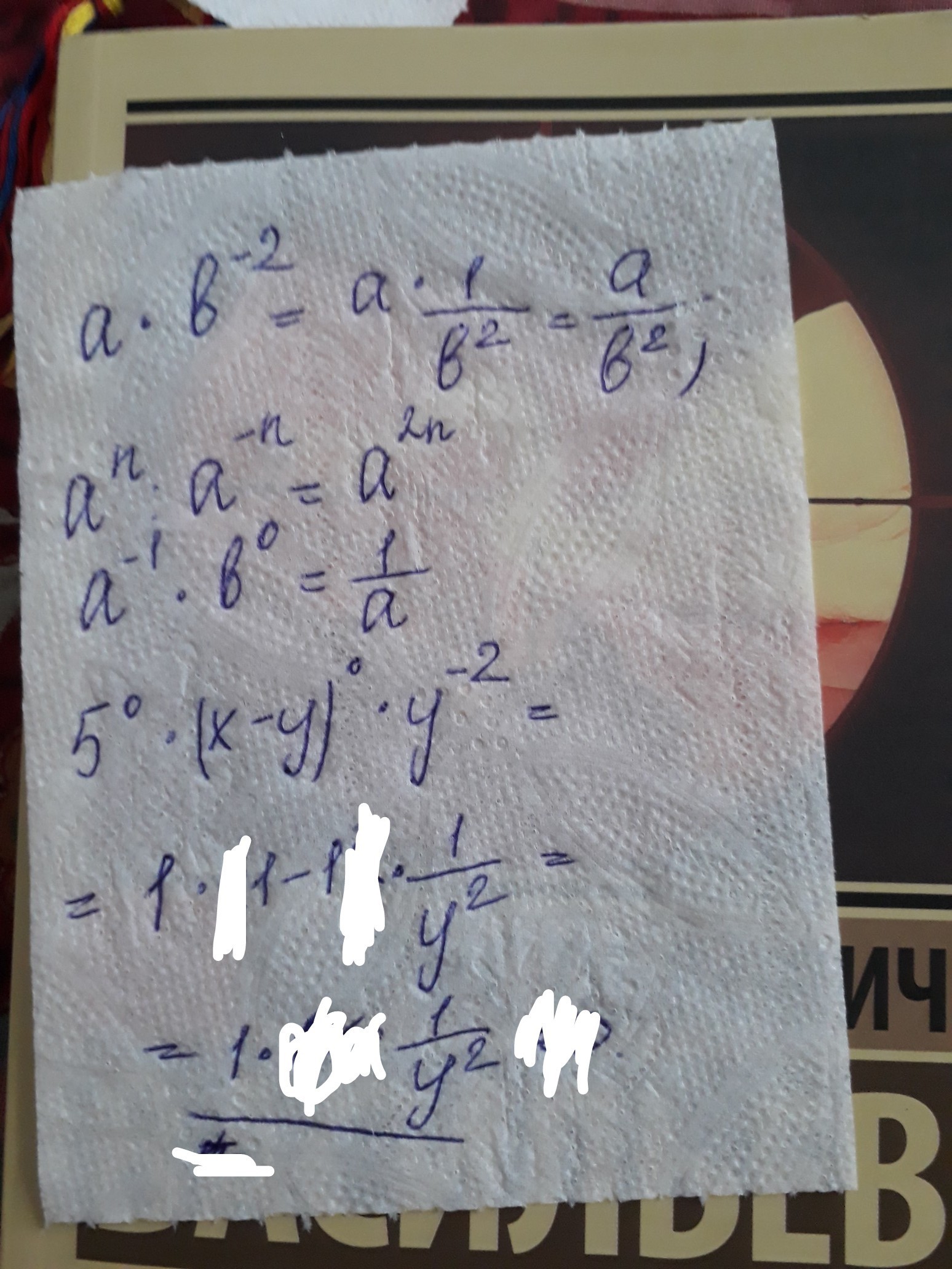 Освабодите выражения от нулевых отрицательных показателей 1) a*b^-2, 2)а^n:a^-n, 3)a^-1*b^0 4)5^0*(x-y)^0*y^-2