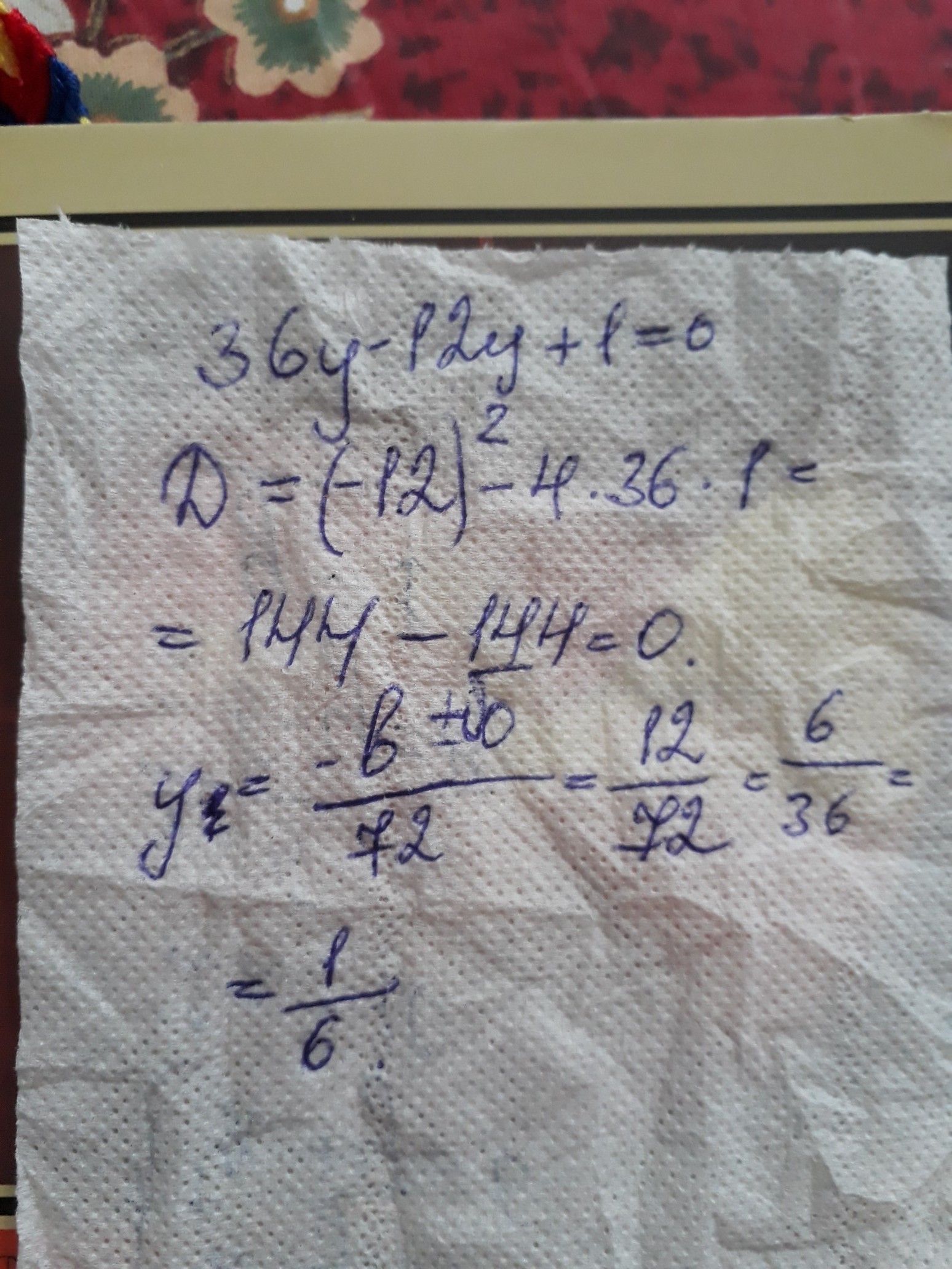 x=(-(-12)+V144-4×36×1)/2*36