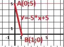 При Х=1 вычисляем У= -5+5 = 0. Точка В(1;0).