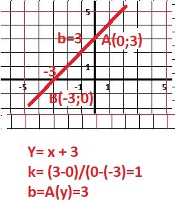 4. Каноническое уравнение прямой: У= k*x + b. Выбираем ДВЕ точки на прямой А(х1;у1) и В(х2;у2). Удобно выбирать их на осях координат.