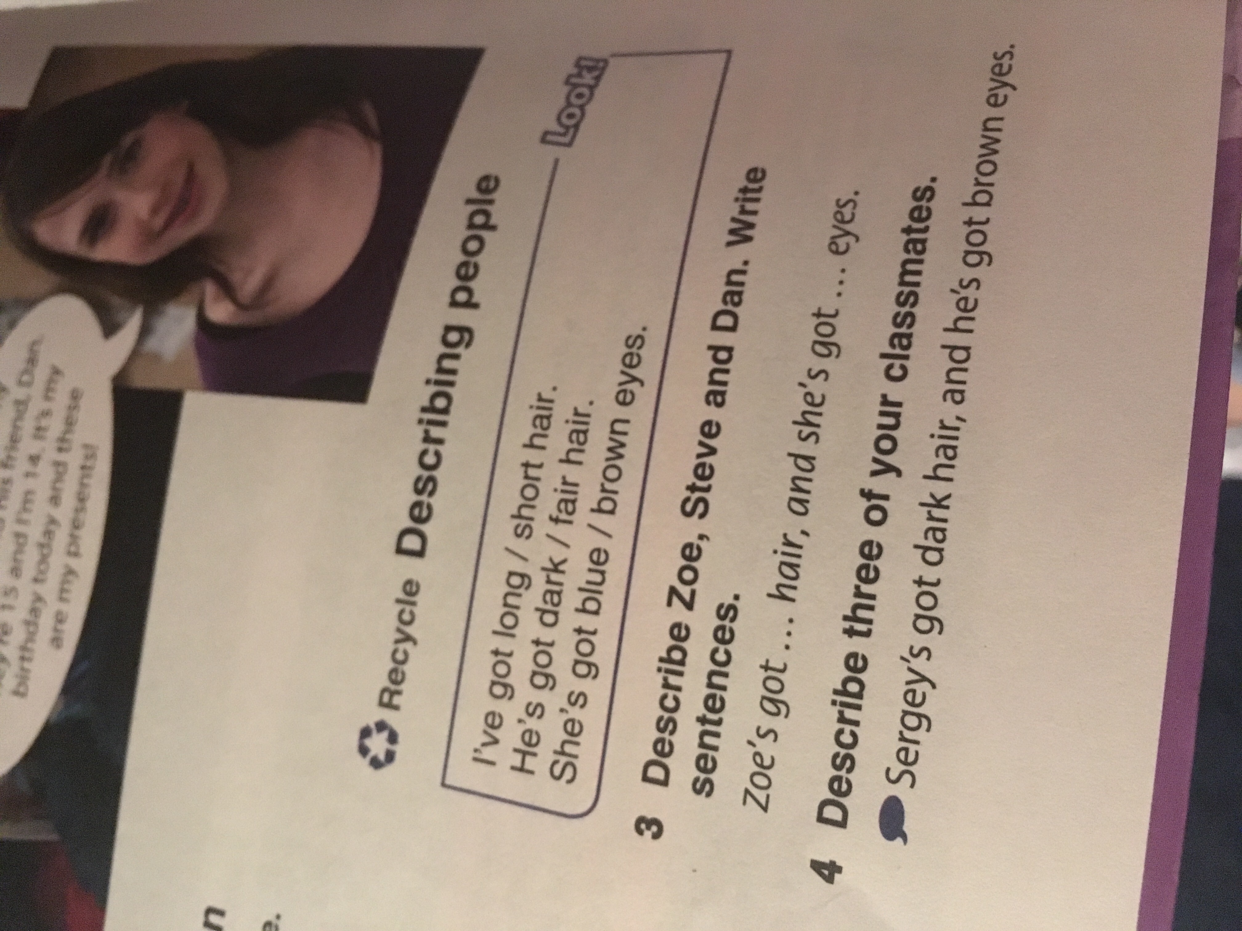 1) My girlfriend has brown eyes and a swarthy skin. 2) My girlfriend is of medium height and with short hair. 3) My friend has a charming smile. 4) My girlfriend really loves sports. 5) The nature of the girlfriend is optimistic.