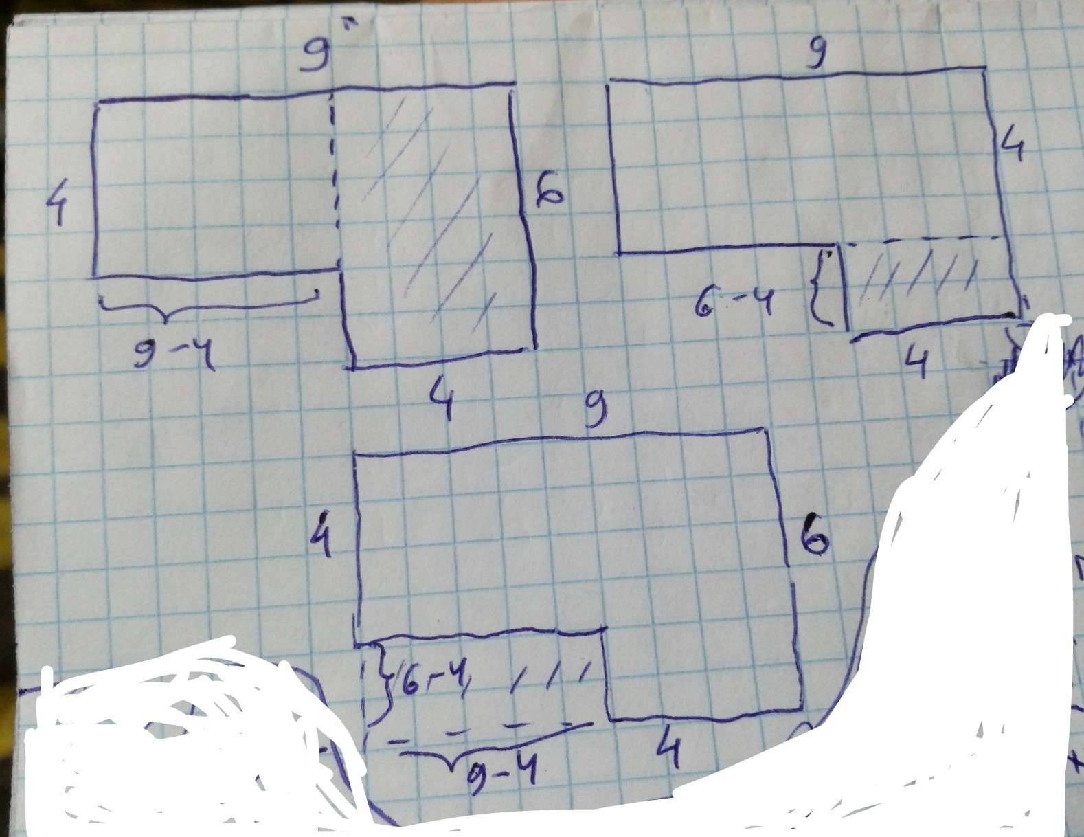 S=9*6-(6-4)*(9-4)=54-2*5=44 см²