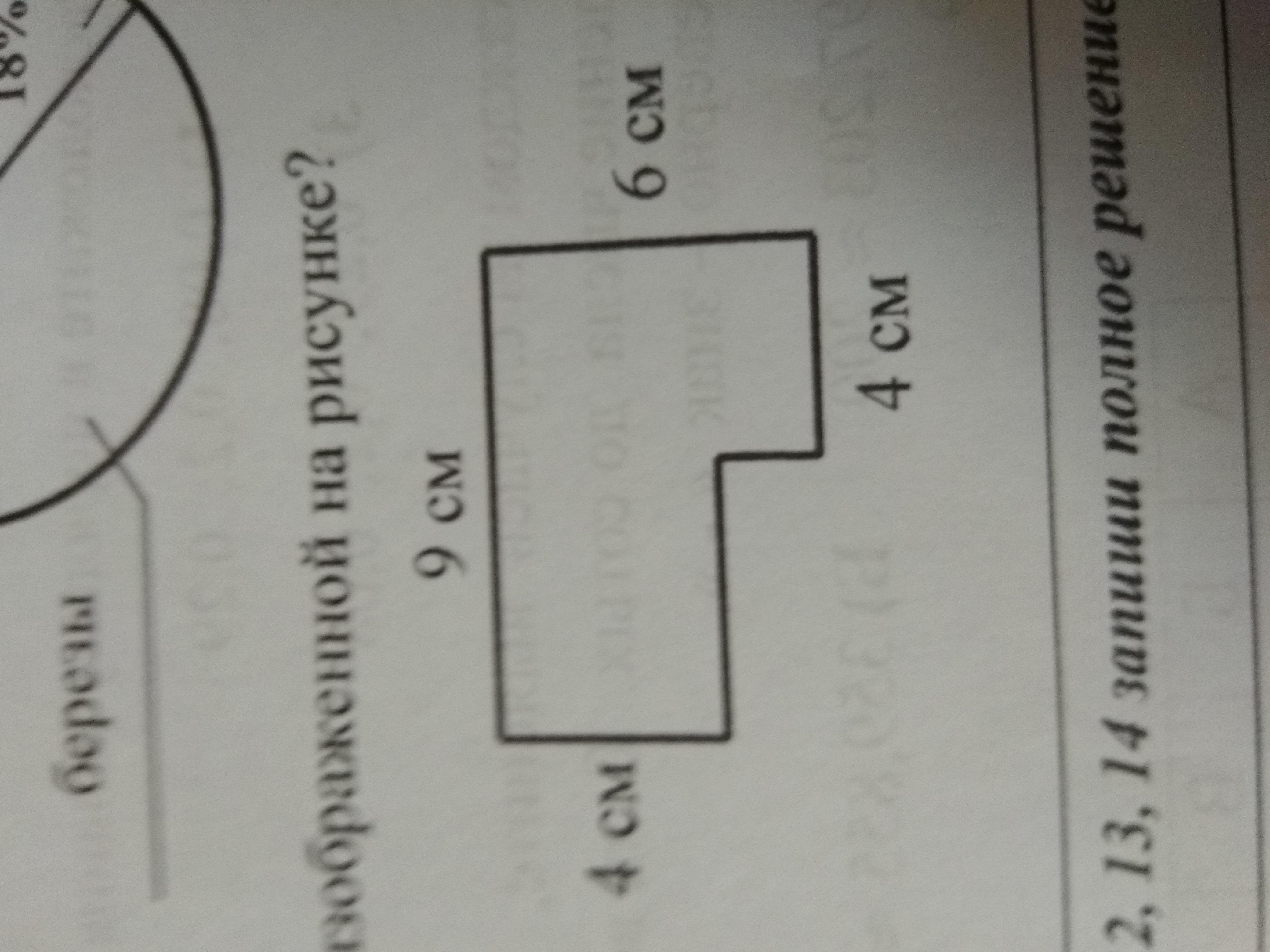S = 9 * 6 - (9 - 4)*(6 - 4) = 54 - 5 * 2 = 44 (см²)