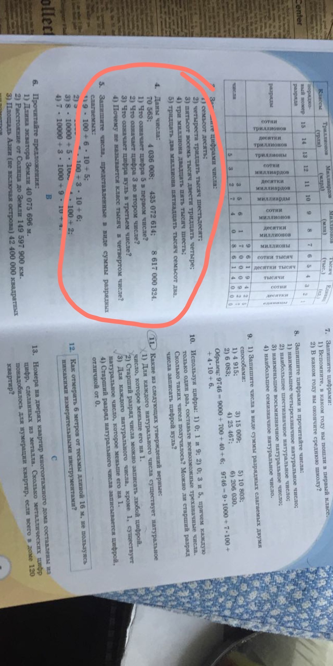 В четвёртом числе класс не называется,потому что там только нули,ноль это не натуральное число