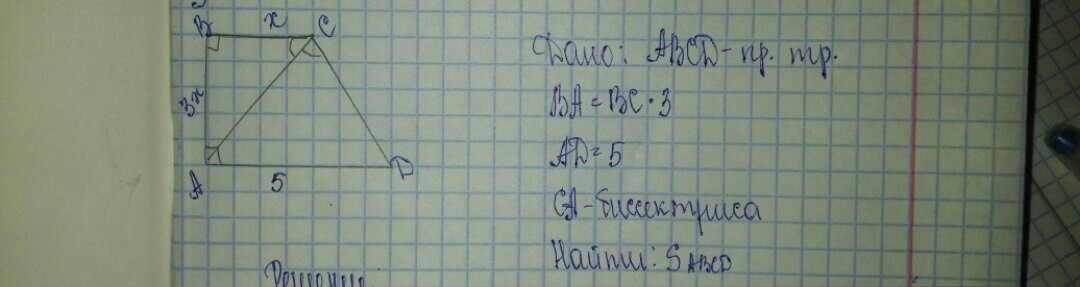 S=(BC+AD)·BA/2=(1+5)·3/2=9