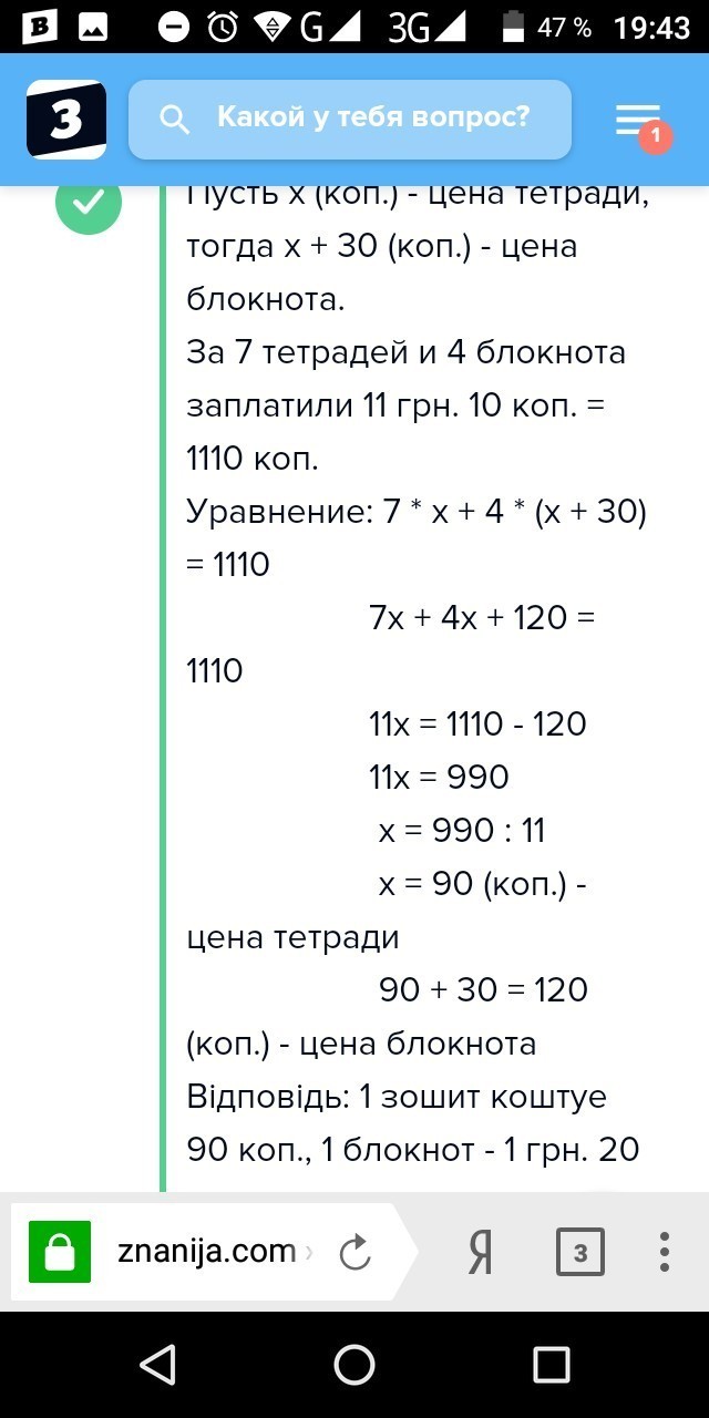 за 7 зошитів і 4 блокноти заплатили 11 грн. 10коп. Скільки коштують 1 зошит і 1 блокнот ,якщо блокнот на 30 коп дорожчий?ПЖ СРОЧНО