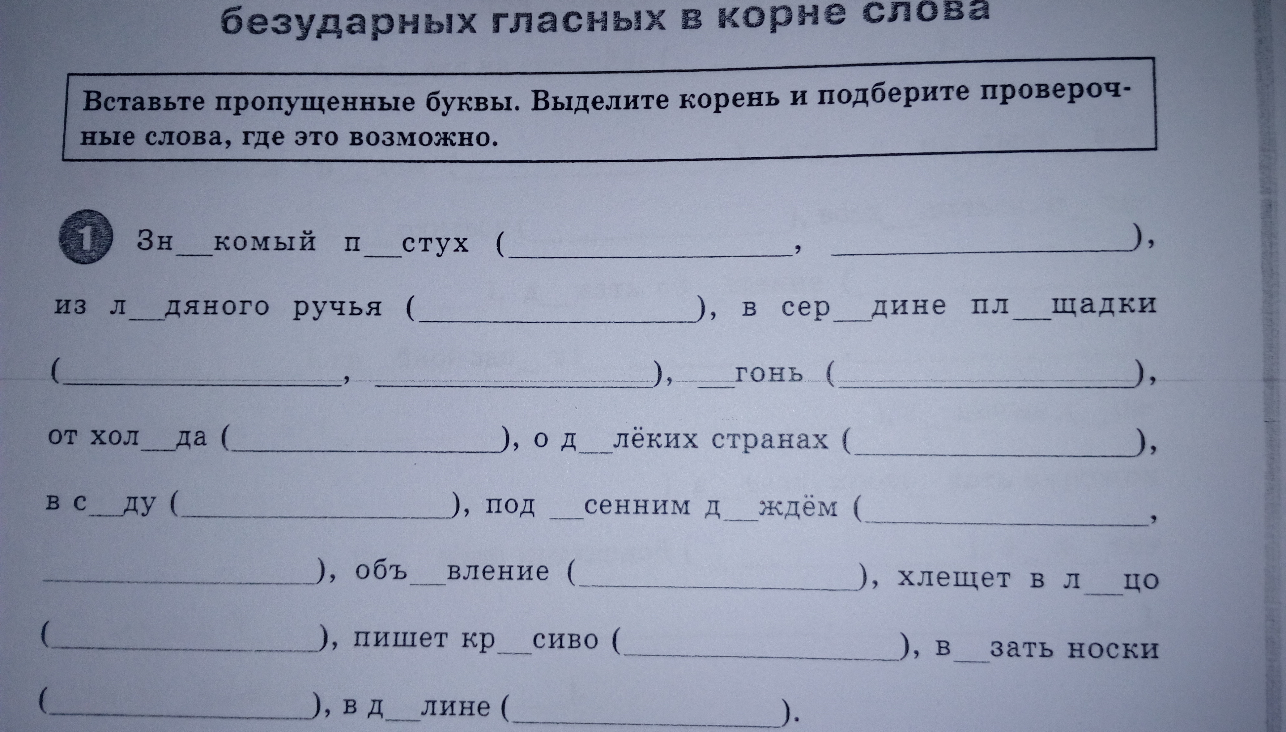 Знакомый - знать, пастух - пас (глагол), (из) ледяного - лёд, (в) середине - серёдка, площадки - площадь, огонь - огненный, (от) холода - холодный, (о) далёких - вдаль, (в) саду - сад, (под) осенним - осень. дождём - дождь, объявление - явка, (в) лицо - лица, красиво - краше, вязать - вязаный, (в) долине - дол.