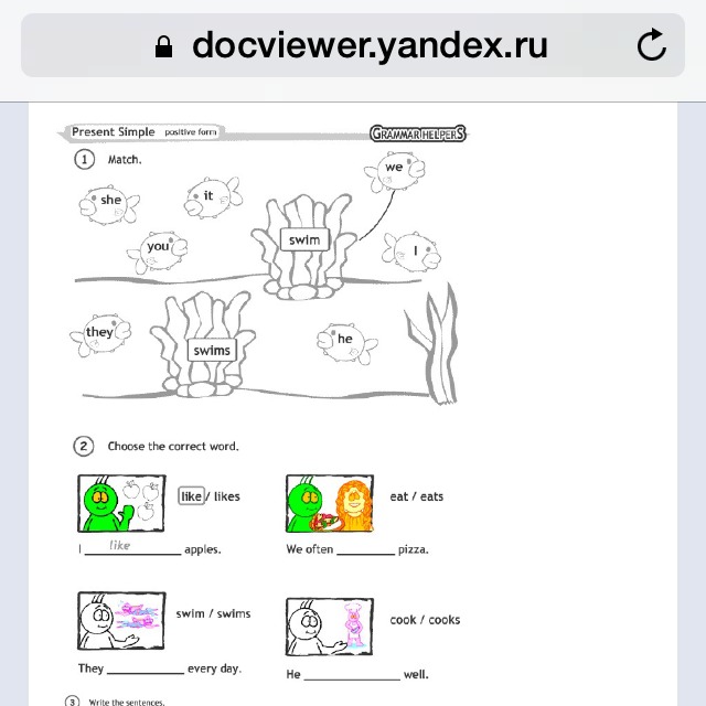 #1)We swim. I swim. You swim. They swim./ He swims. She swims. It swims.