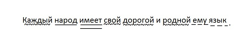 Пр. Сущ. Гл. Мест. Пр. Каждый народ имеет свой дорогой Пр. Мест. Сущ и родной ему язык.