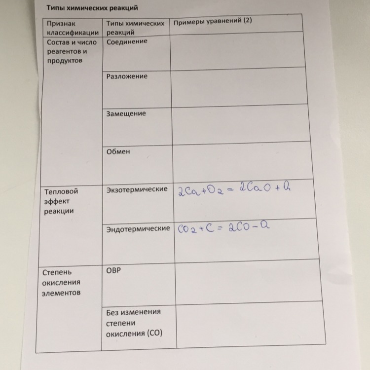 Замещение: Zn + CuSO₄ = ZnSO₄ + Cu.