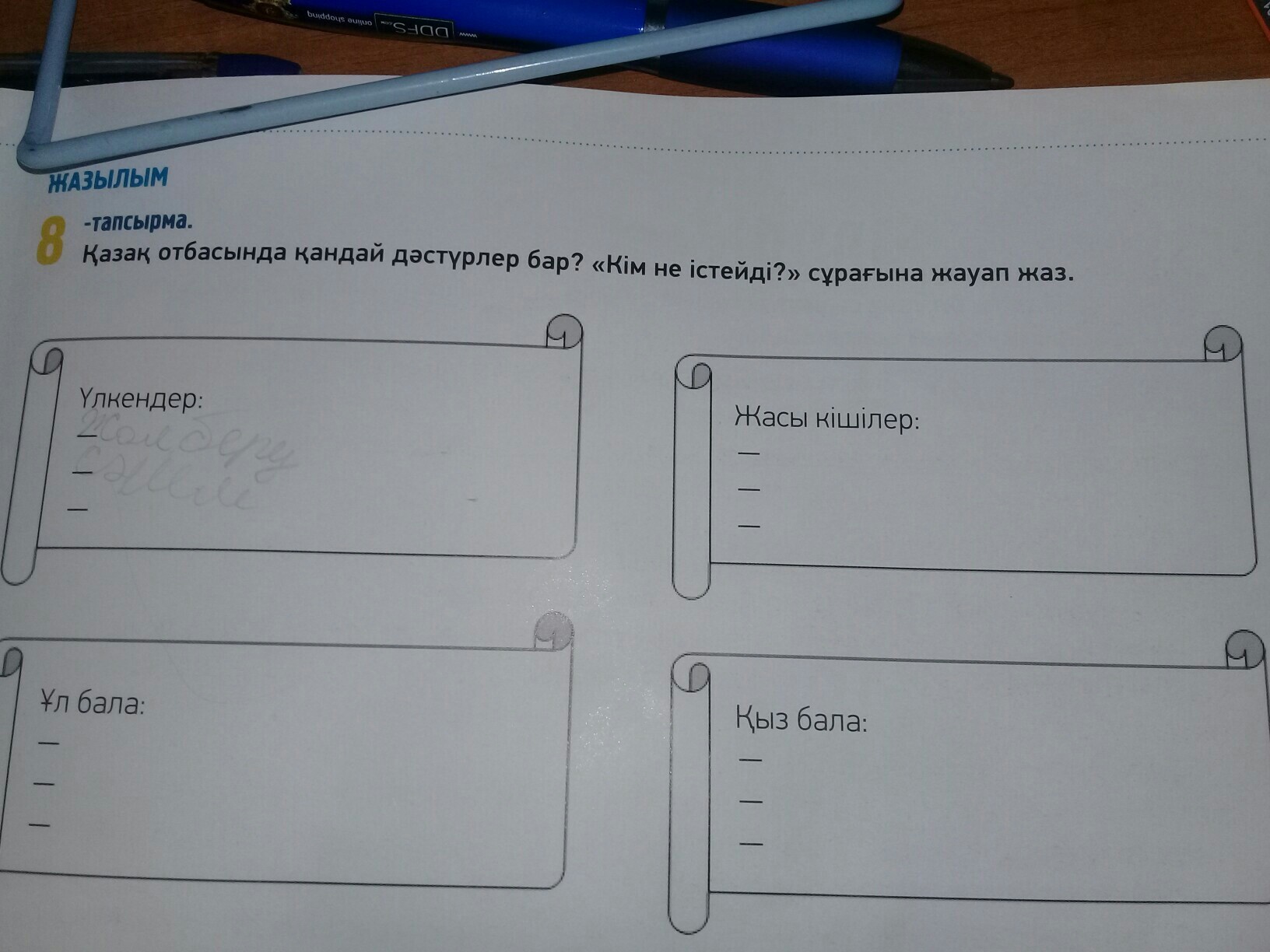 - үлкендерге кұрмет көрсетеді;