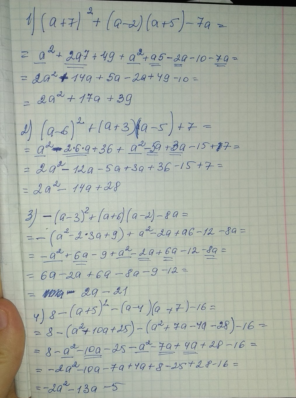 4)8-(a+5)^2-(a-4)(a+7)-16.