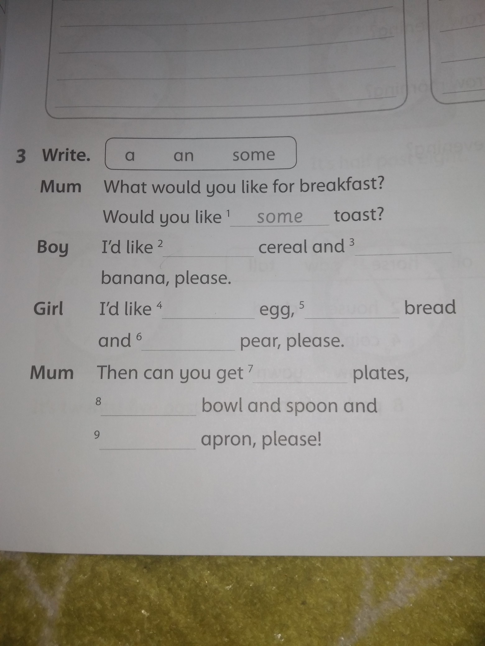 2.some,3.a,4.an,5.some,6.a,7.some,8.a,9.an.