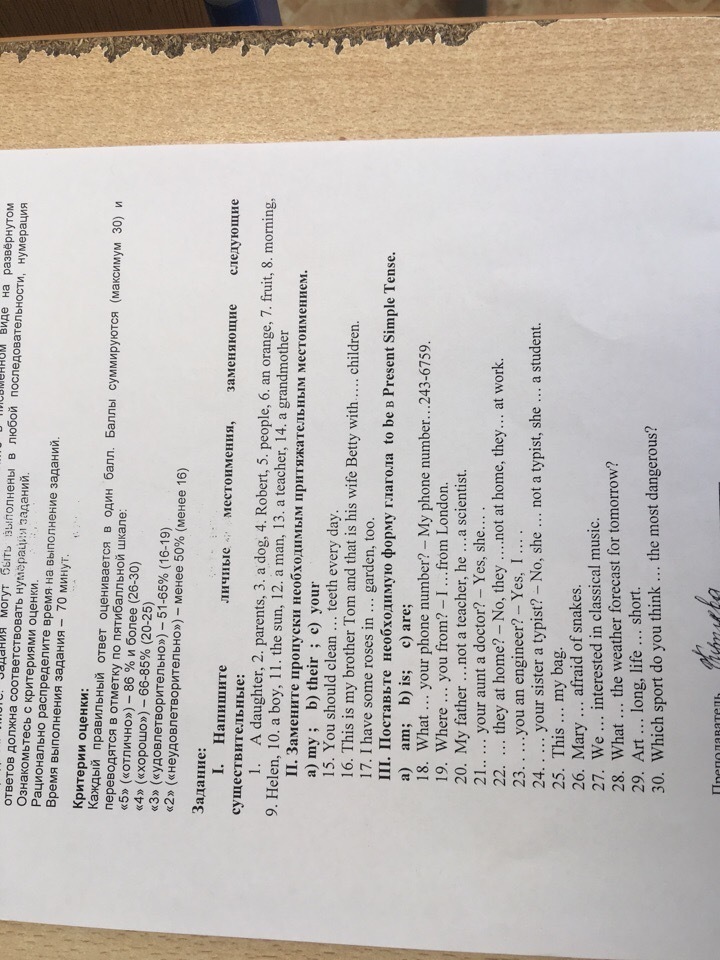 1. A daughter, 2. parents, 3. a dog, 4. Robert, 5. people, 6. an orange, 7. fruit, 8. morning, 9. Helen, 10. a boy, 11. the sun, 12. a man, 13. a teacher, 14. a grandmother