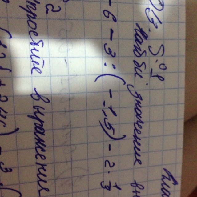 -6-3:(-15)-2•1/3 =-6+1/5-2/3=-5 4/5-2/3=-5 (12+10)/15=-5 22/15=-6 7/15