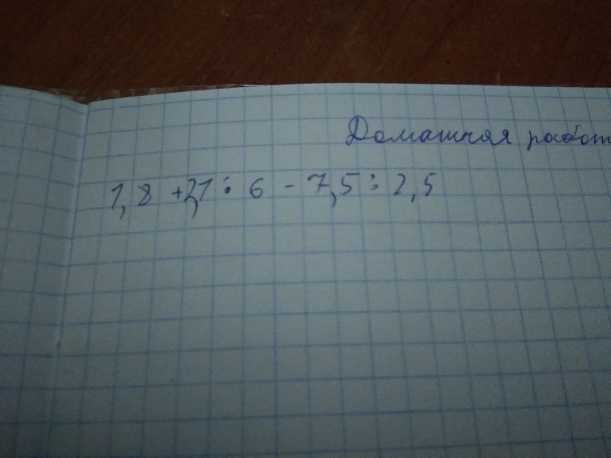 1.8 + 2.1 div 6 - 7.5 div 2.5 = 1.8 + 0.35 - 3 =  \  = 2.15 - 3 =  - 0.85