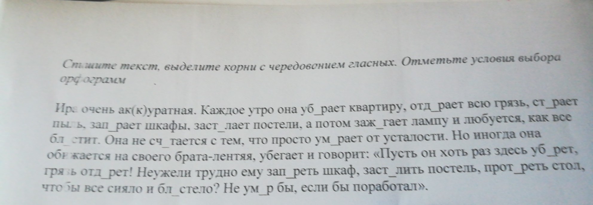Спишите текст выделите корни с чередованием гласных. Отметьте условия выбора орфограмм.