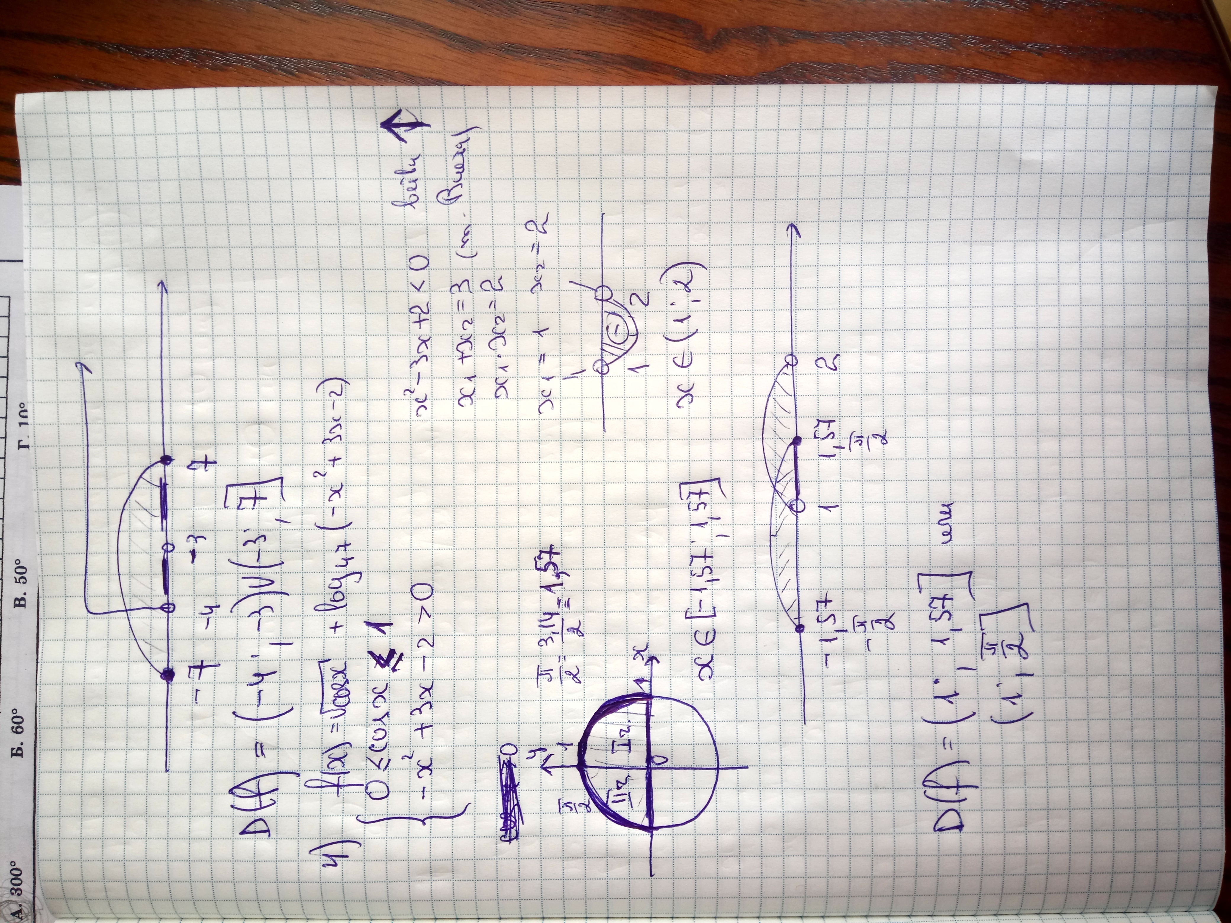 4. f(x) =√cosx +Log₄₇ (-x² +3x -2)