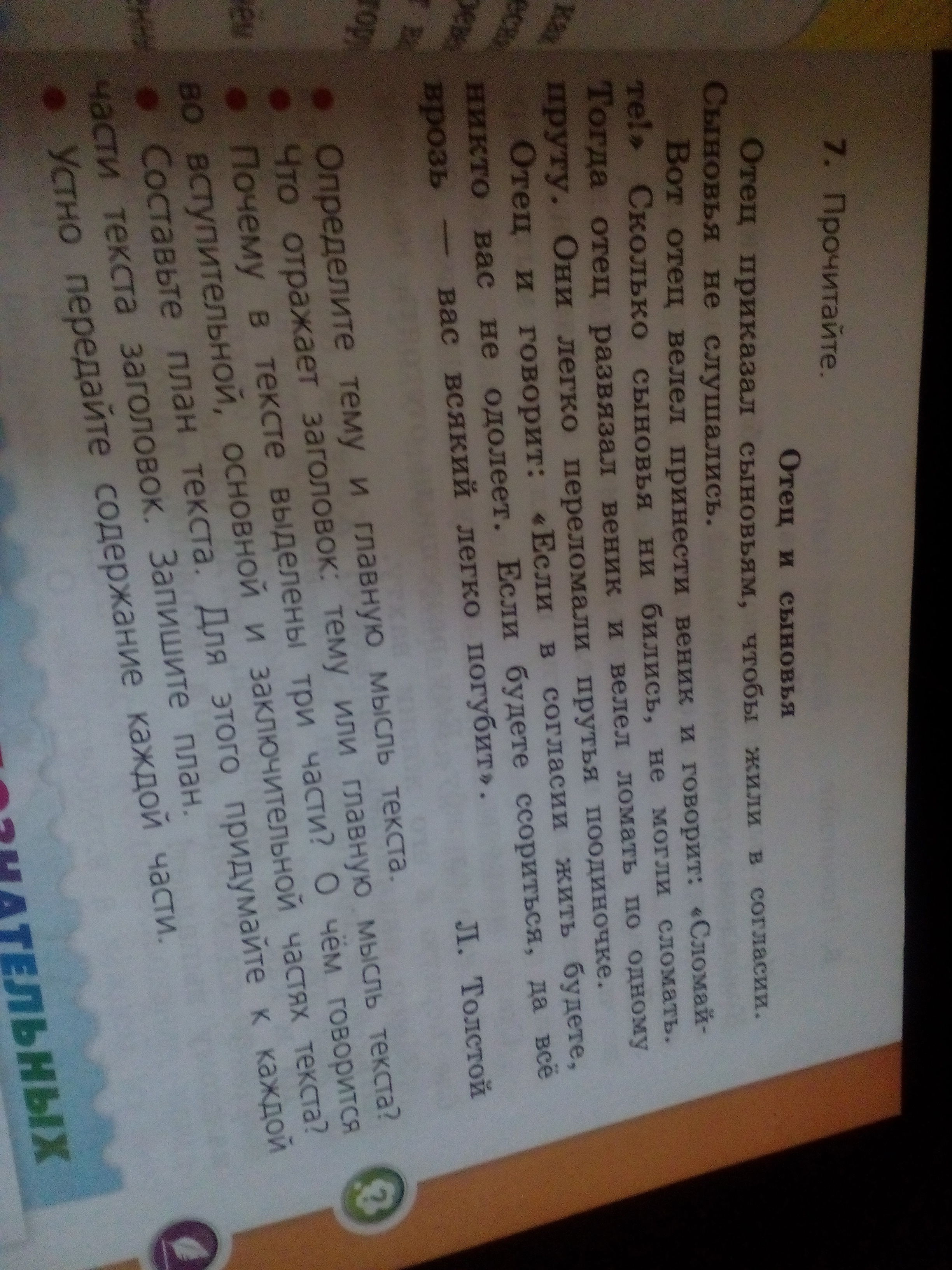 1)Приказ отца 2)Ломают веник 3)Если в согласии жить будете,никто вас не одолеет.