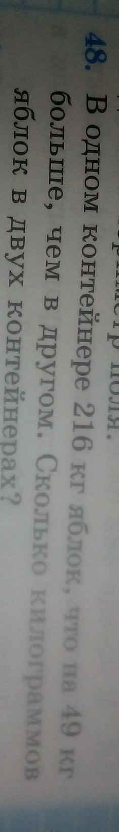 Дано: в одном 216кг, в другом (216-49)кг, всего 216+(216-49)=383кг