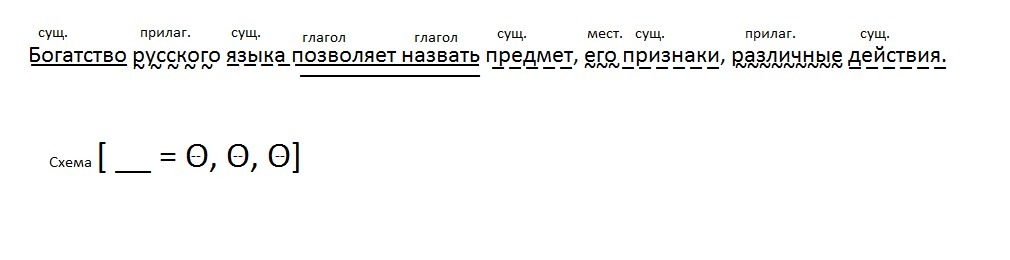 Пж помогите синтаксический разбор. Богатство русского языка позволяет назвать предмет, его признаки, различные действия.
