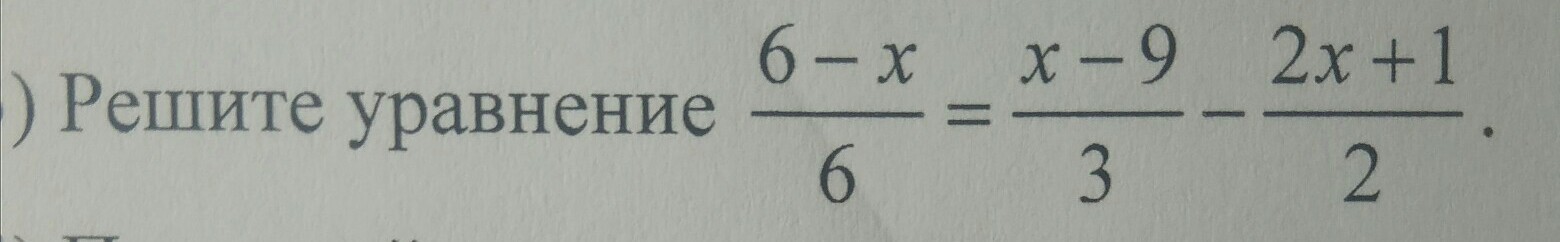 Общий знаменатель 6, тогда 6-х= (2х-18)-(6х+3), -х-2х+6х=-18-3-6, 3х=-27, х=9 -ответ