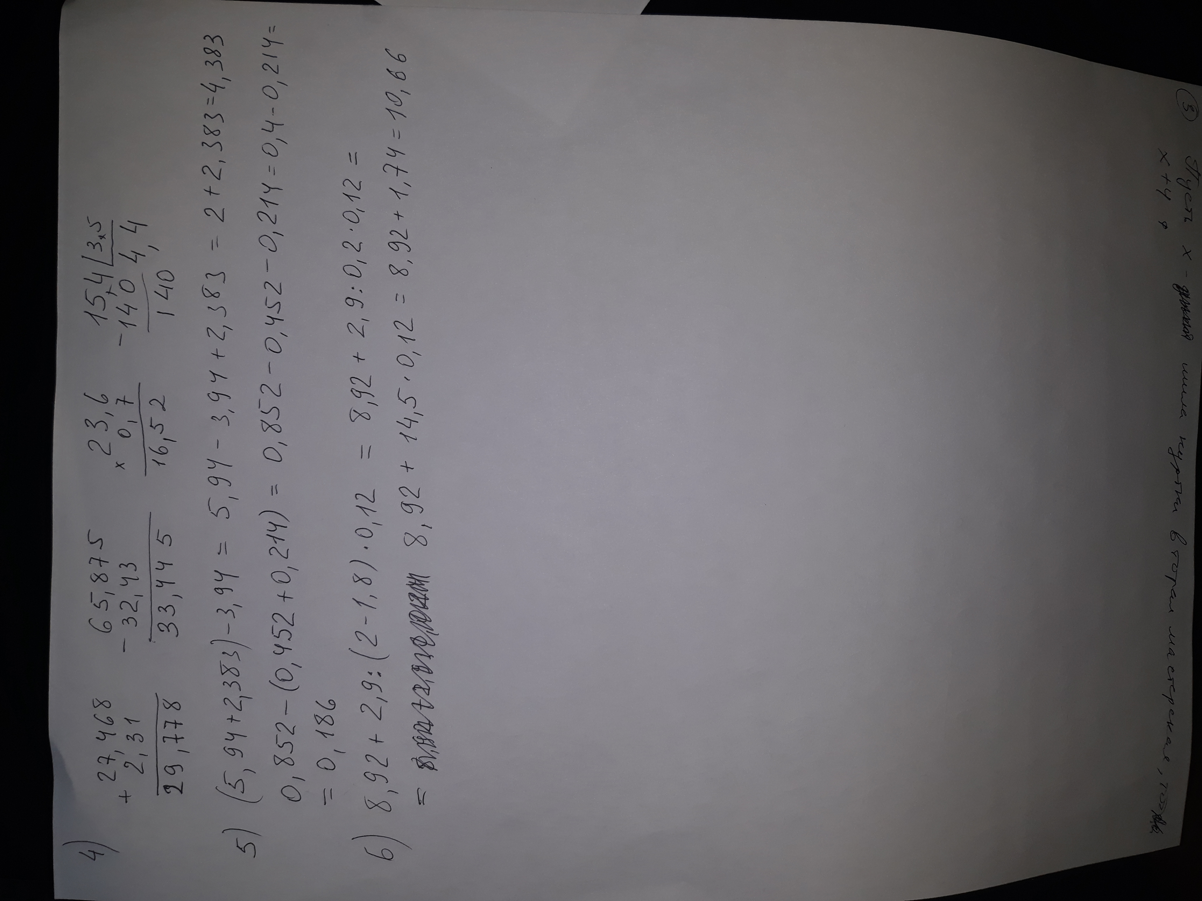 3) 2.4+1.26=3.66; 8.76-2.43=6.33; 42.68×10=426.8; 2386.7:100=23.867; 5.2×0.3=1.56; 36.6:6=6.1