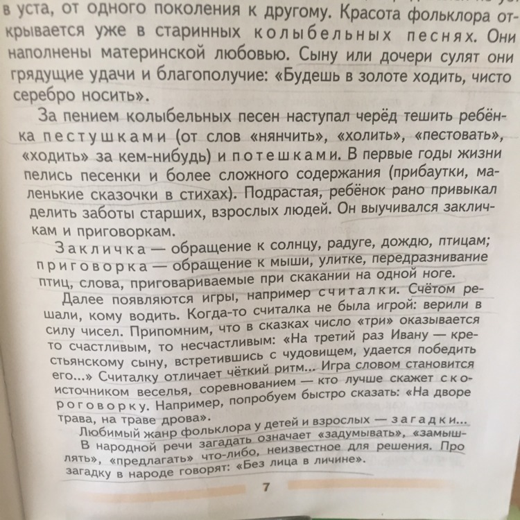 С помощью учебника и словарей Дайте определение следующим жанрам устного народного творчества фольклора пестушка потешка колыбельная песня закличка приговорка прибаутка считалка скороговорка загадка
