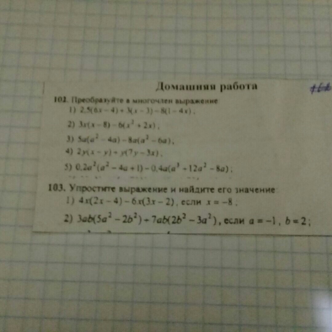 2)3ab(5a²-2b²)+7ab(2b²-3a²)=15a³b-6ab³+14ab³-21a³b=-6a³b+8ab³ подставим значения