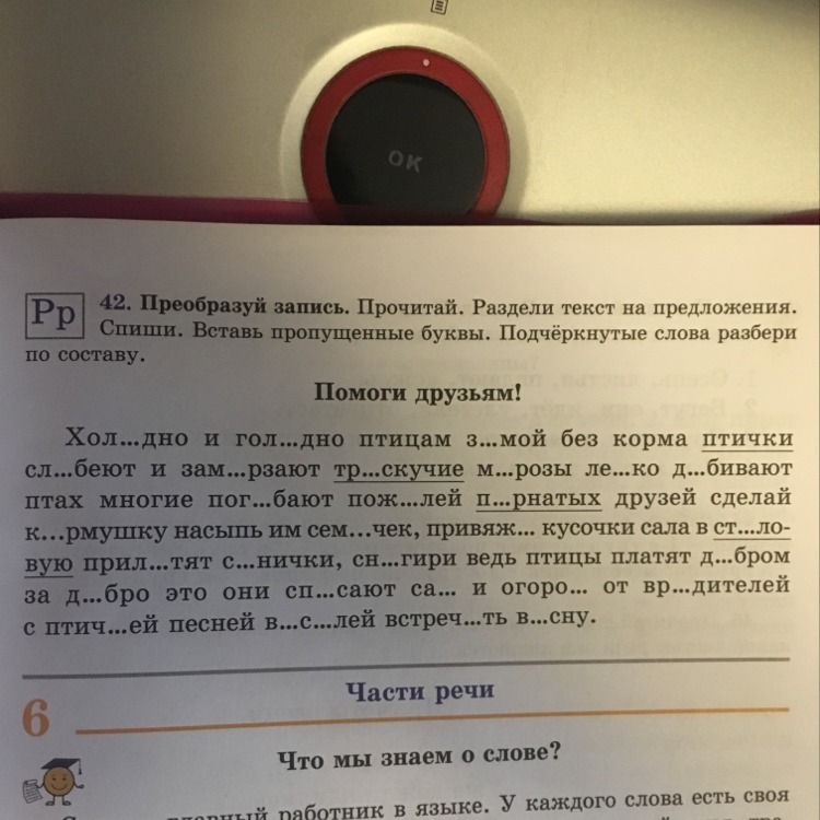 преобразуй запись. прочитай. раздели текст на предложения. спиши. вставь пропущенные буквы. подчеркнутые слова разбери по составу