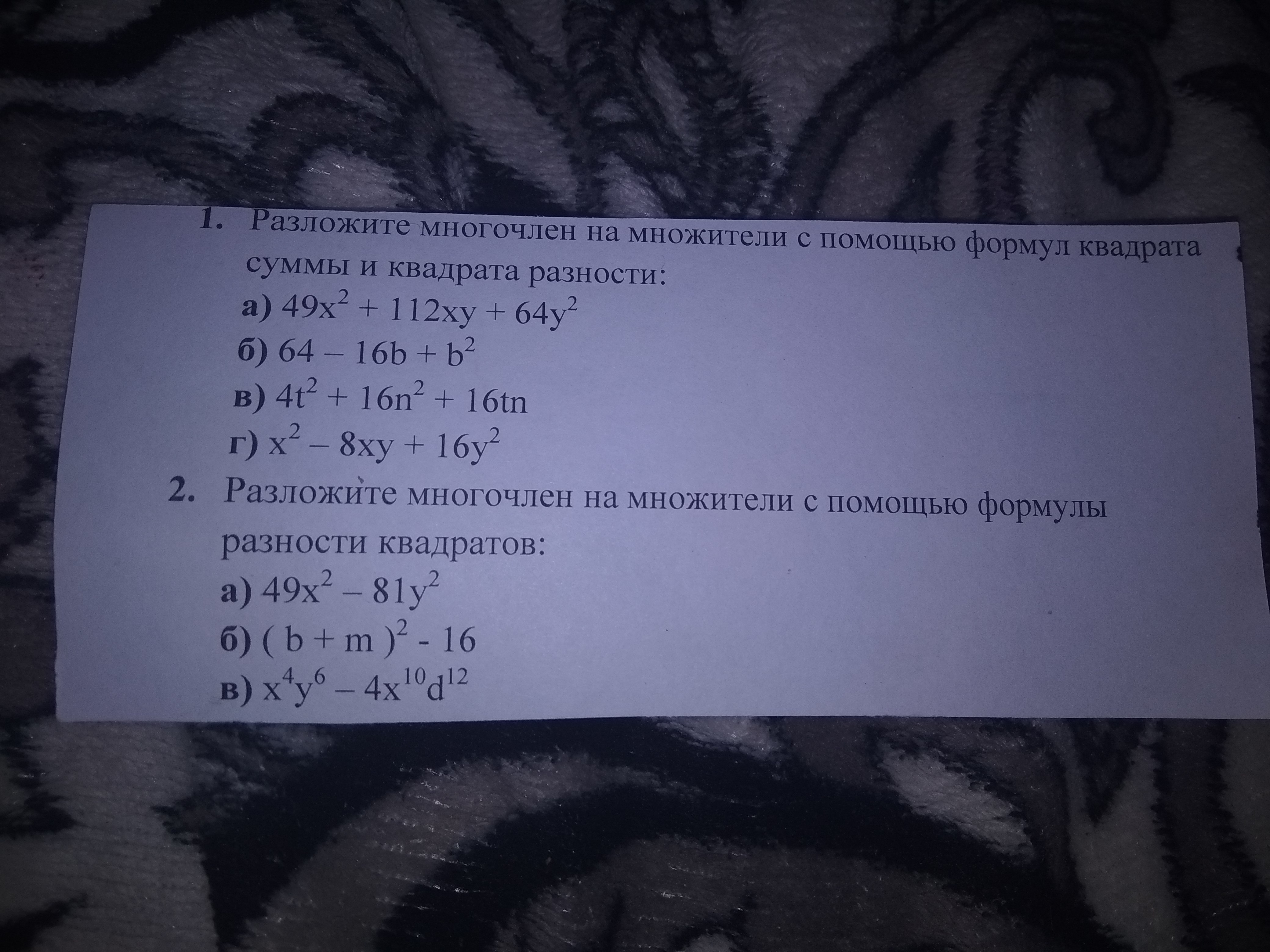 Разложите многочлен на множители с помощью формул квадрата суммы и квадрата разности!! Ребят, кто сможет решить, очень срочно нужно!!