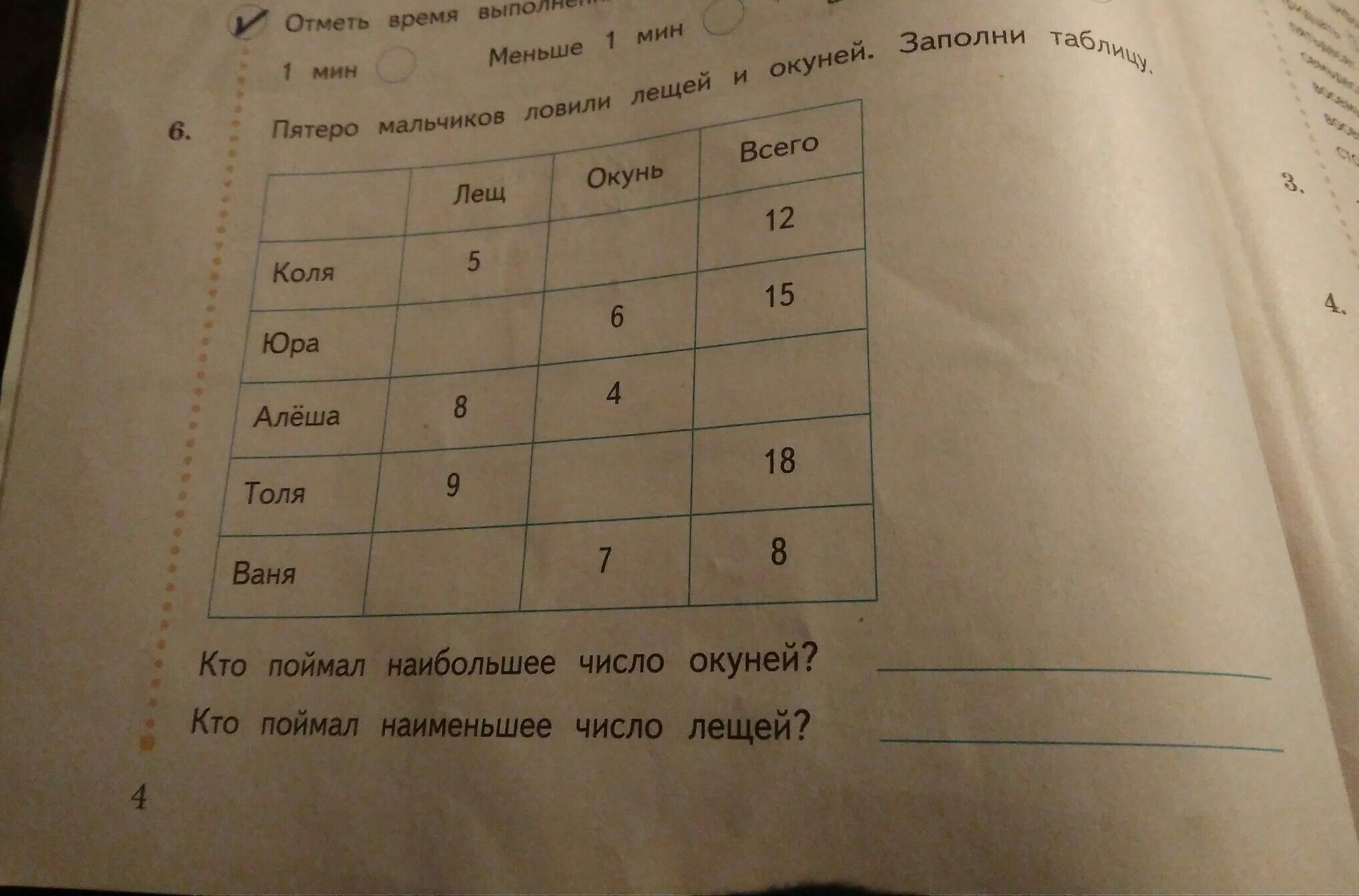 Кто поймал наибольшее число лещей? Толя, Юра.