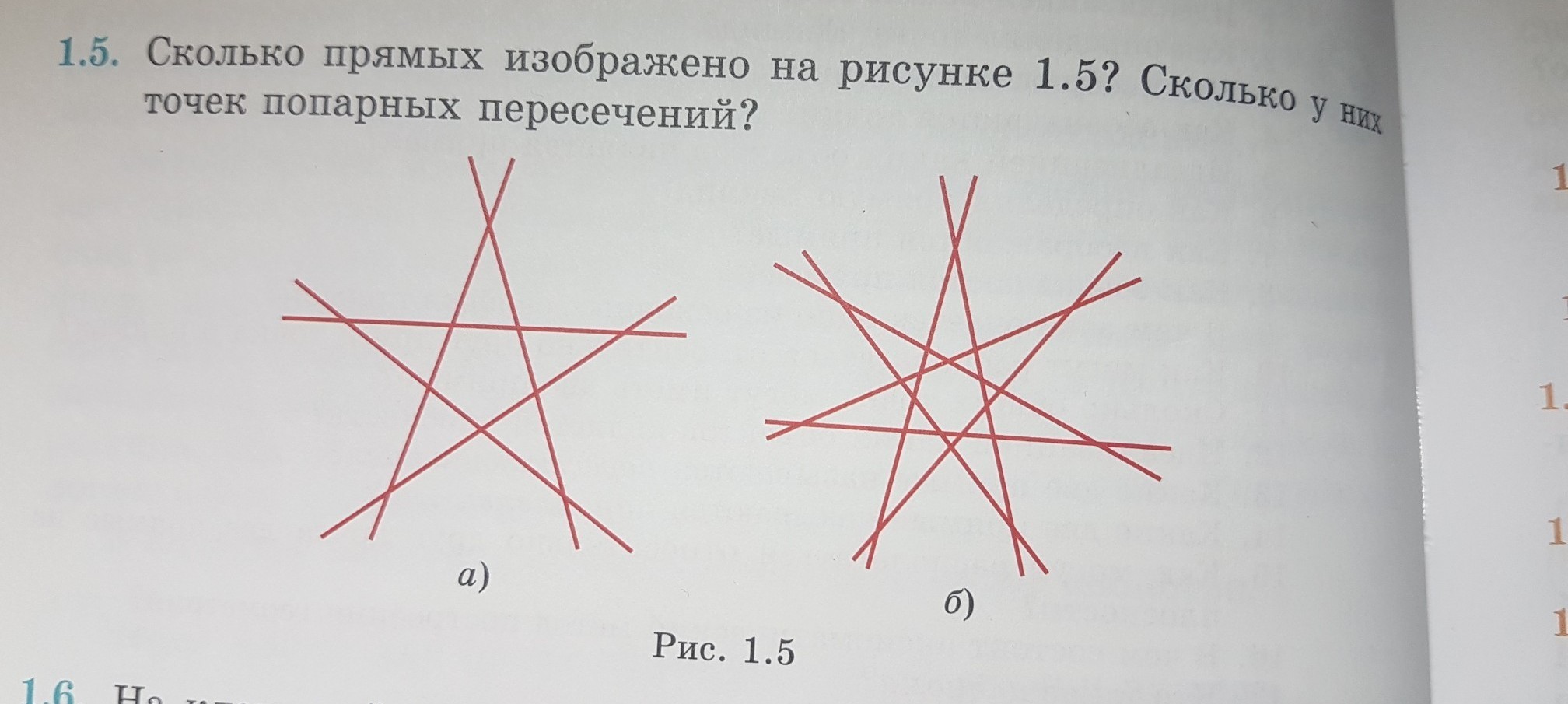 на первом рисунке изображено 5 прямых и 10 точек пересечений