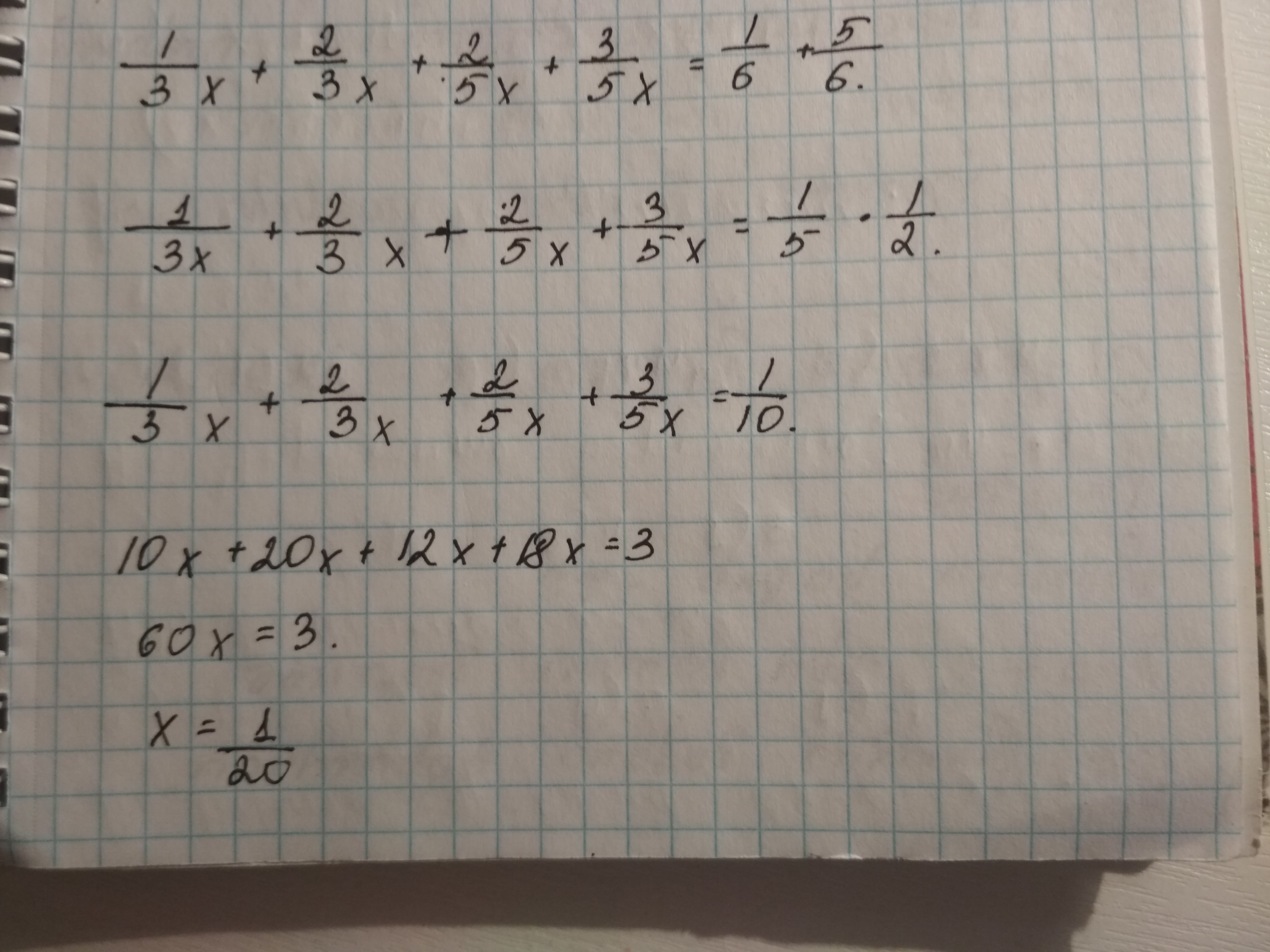 1/3х+ 2/3х+2/5х+3/5х=1/6+5/6