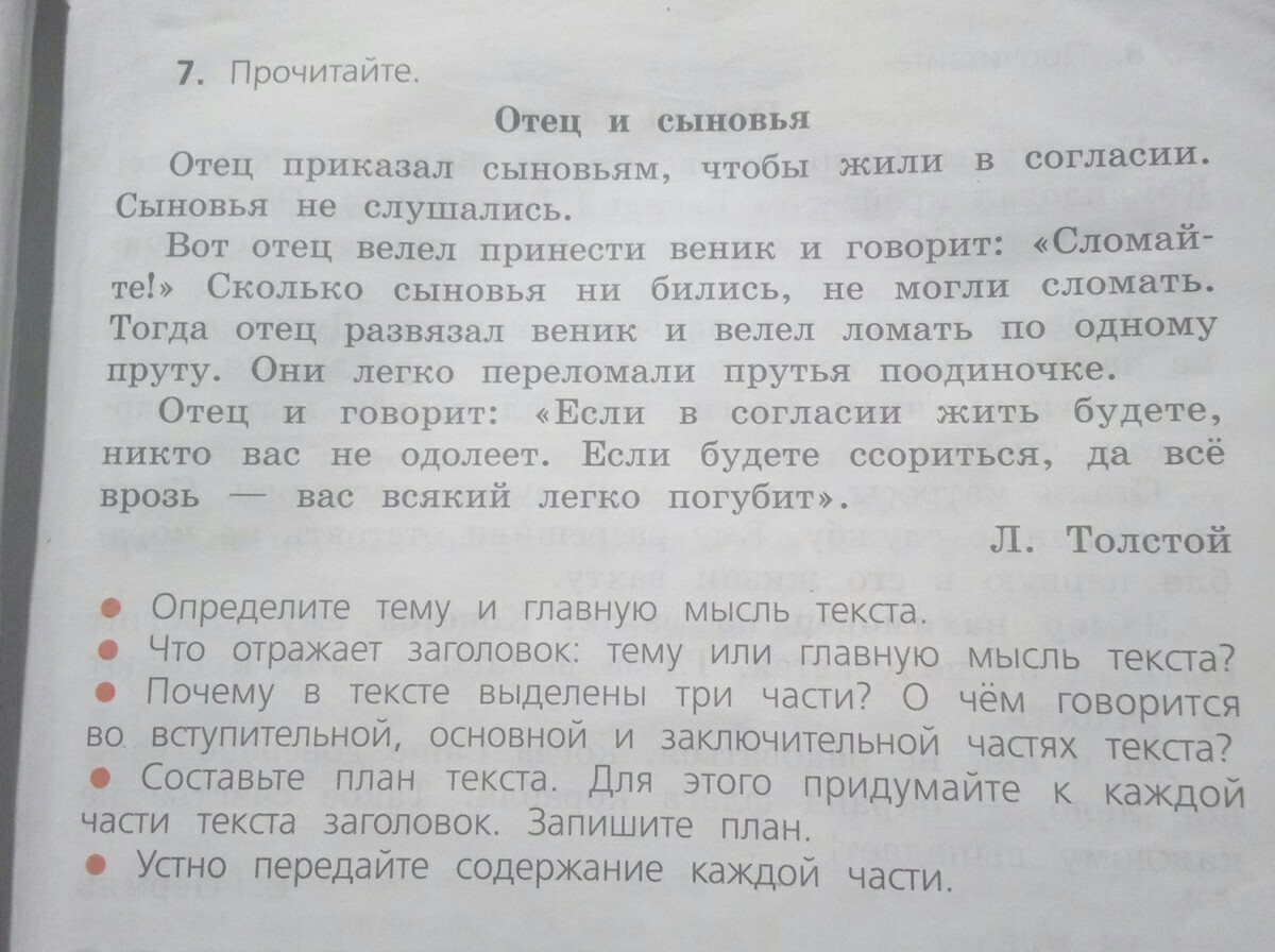 Отец и сыновья отец приказал сыновьям чтобы жили в согласии сыновья не слушались вот отец велел принести