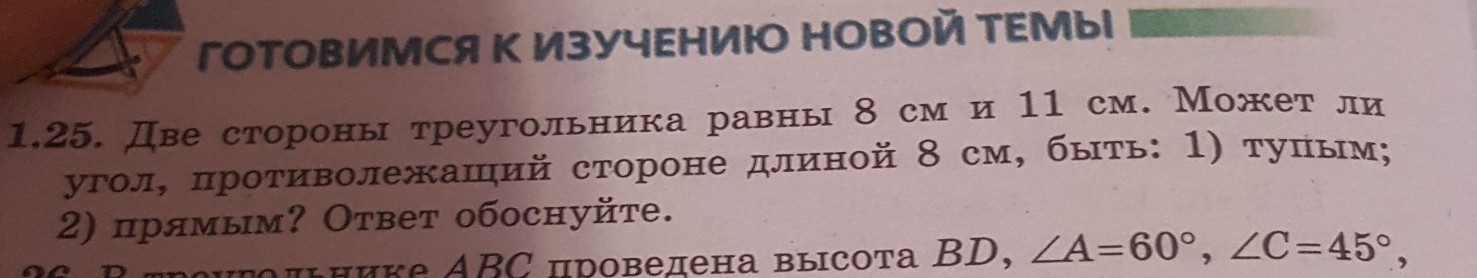 1) Нет. По теореме о соотношении сторон и углов треугольника против большей стороны лежит больший угол. Тогда если напротив стороны 8 см лежит тупой угол, то логично, что напротив стороны 11 см тоже тупой угол. Однако, по теореме о сумме углов треугольника, их сумма равна 180°. Но x>90 + y>90 + z ≠ 180, надеюсь понятно почему. То есть два тупых угла уже не могут быть равны или меньше 180°.