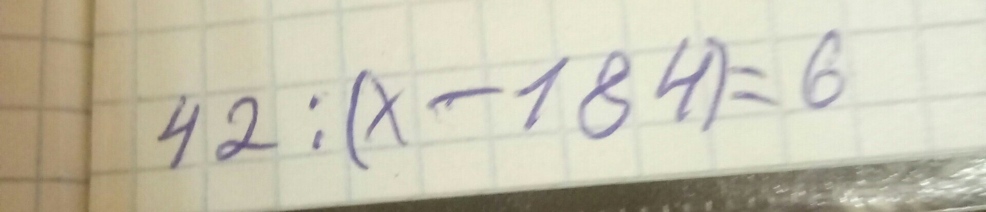 42:(х-184)=6 Х-184=42:6 Х-184=7 Х=184+7 Х=191 Проверка 42:(191-184)=42:7=6