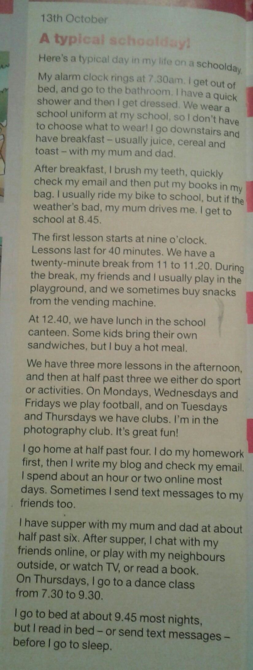 Write questions and short answers. Use the blog entry on pages 6 and 7 to help you.