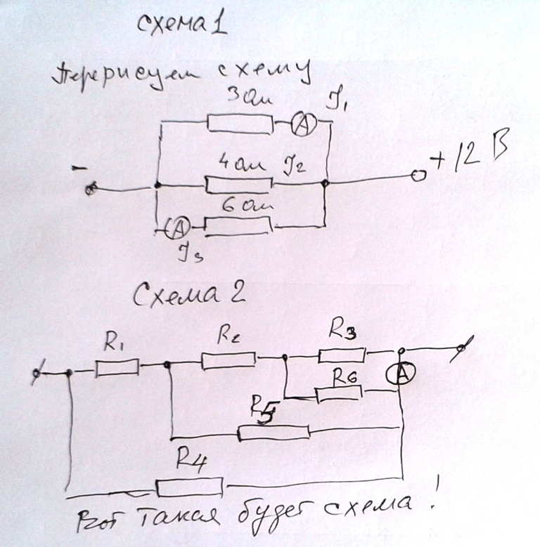 I3=12/3=4A, I4=12/4=3A, I6=12/6=2A, Aнижний=3+4=7А, Аверх=3+2=5А