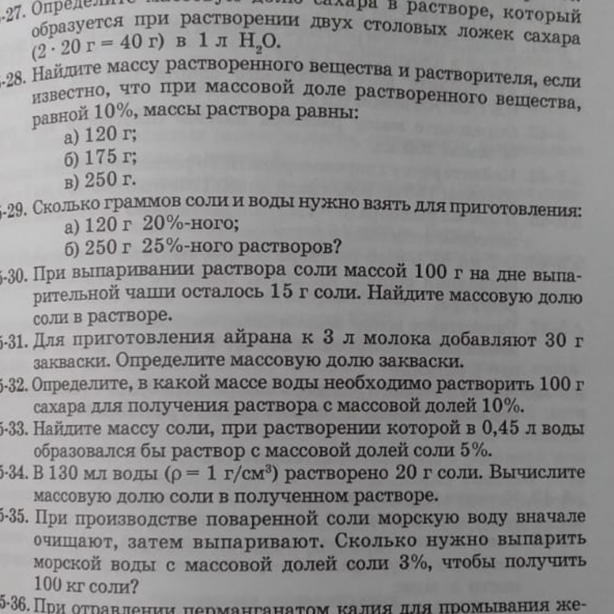 29) 24 соли и 96 воды 30) 62,5 соли и 187,5 воды