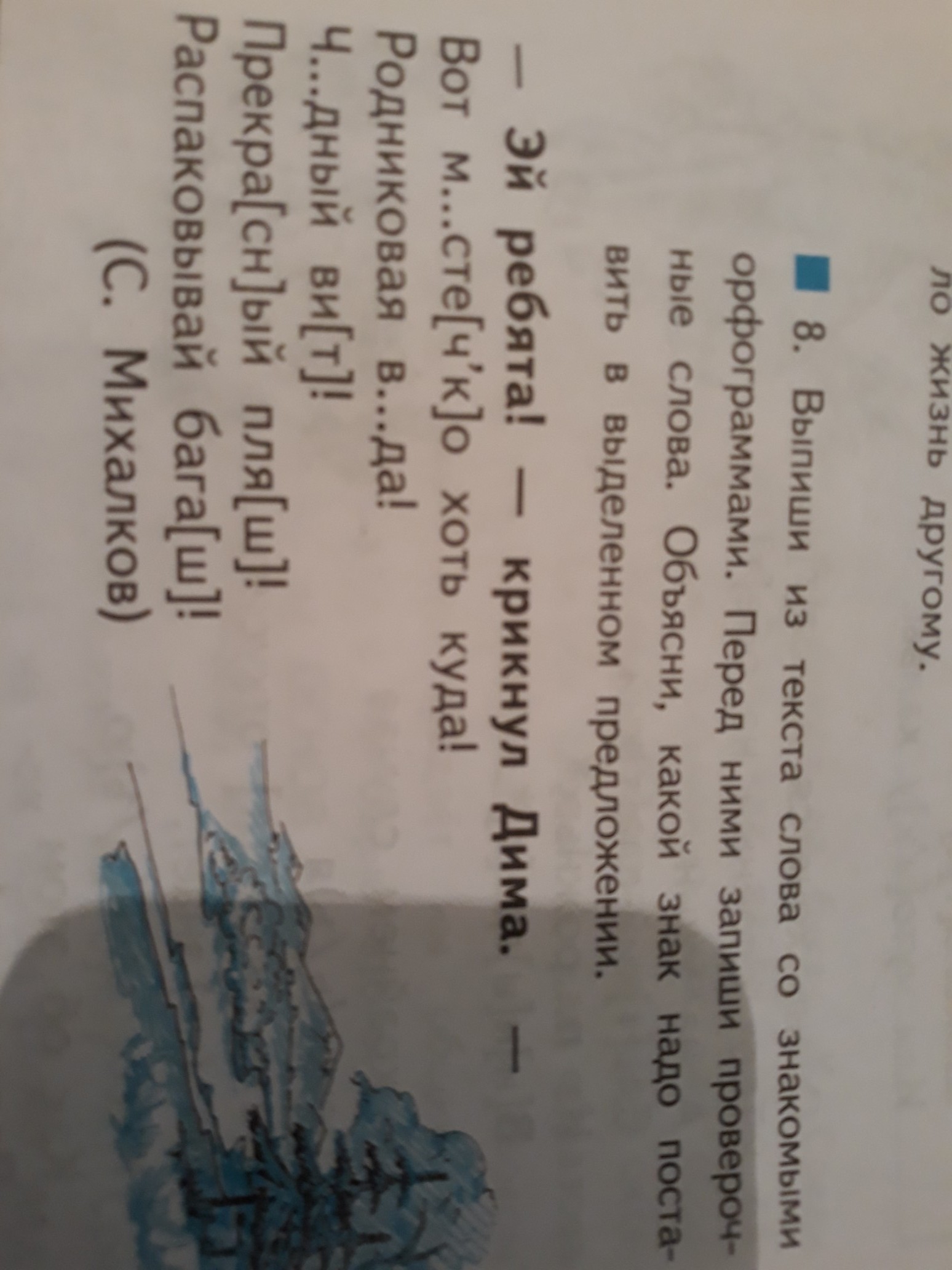 1. Вот местечко. 2. Родниковая вода. 3. Чудный вид. 4. Прекрасный пляж. 5. Распакованный багаж.