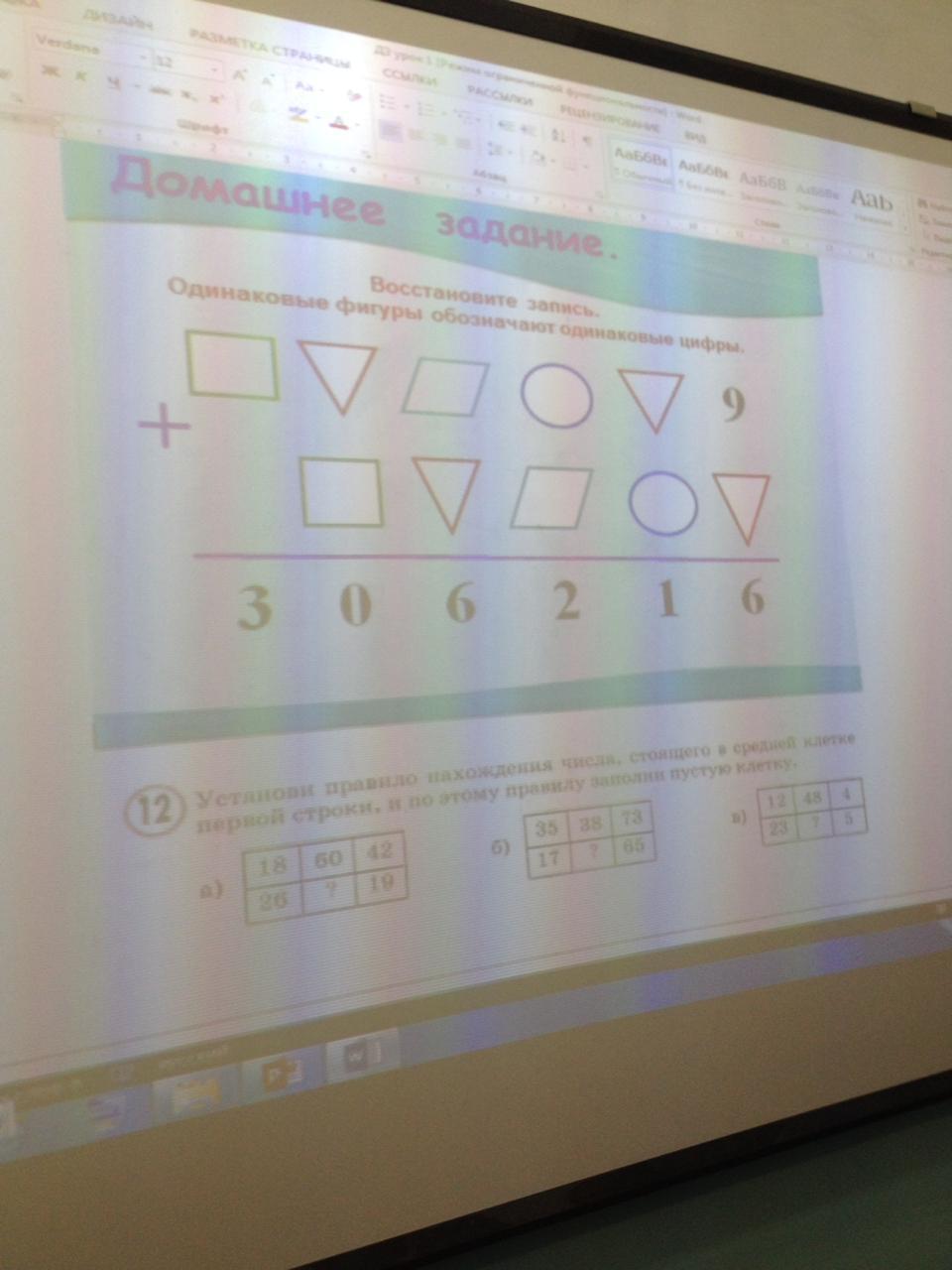 треугольник-7, зелёный квадрат-3, круг-4, ромб-8 или 9 я так ине понял