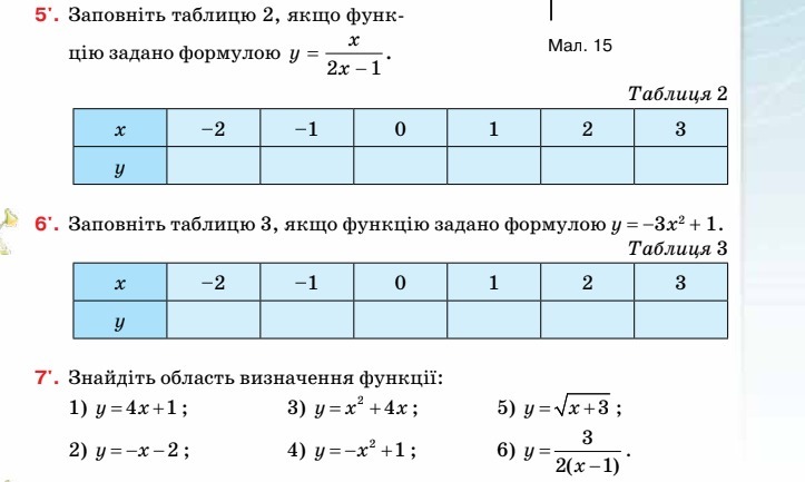 5.Заполните таблицу 2, если функцию задано формулой y=x/2x-1.