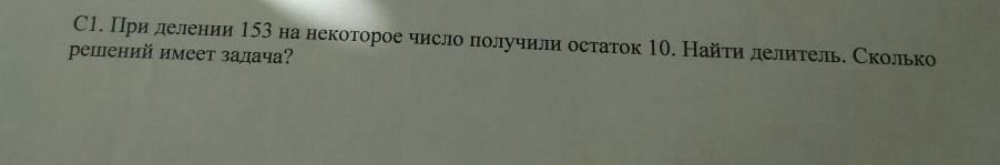 при делении 153 наименьшее число получили остаток 10 найдите делитель сколько решений имеет задача