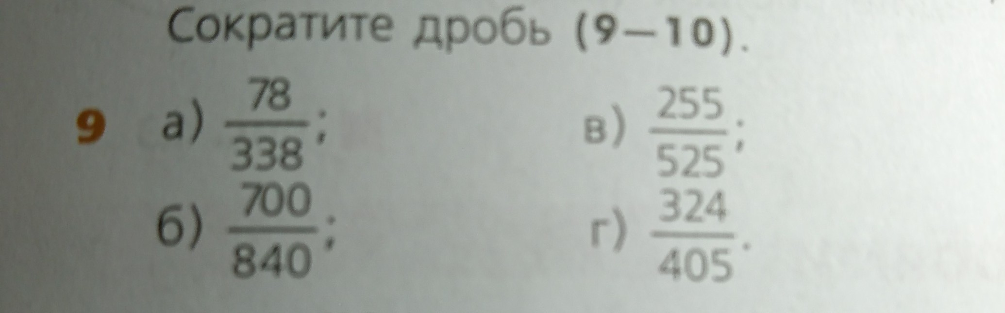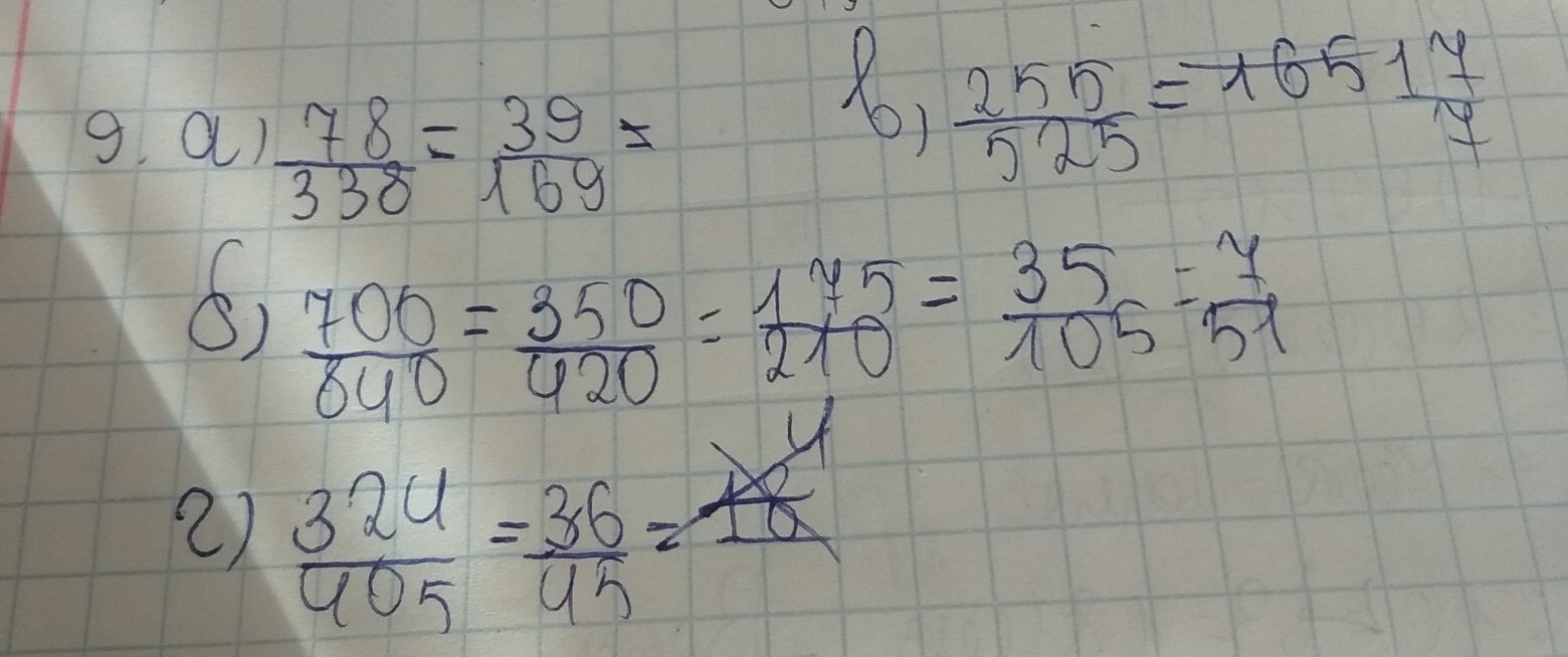 Б) 10/12=5/6 в) 17/35 а) 6/26=3/13 г)12/15=4/5